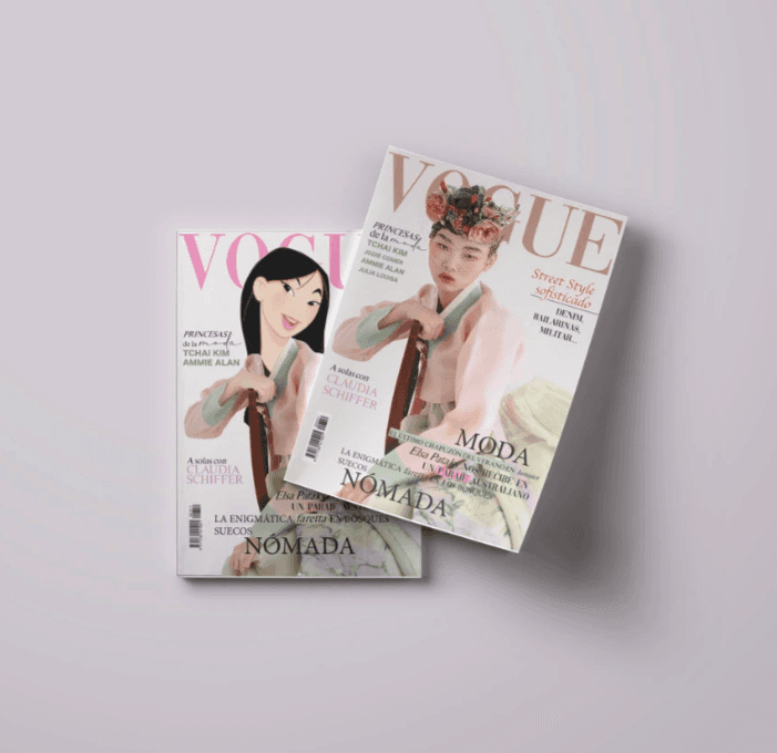 El encargo consistía en la realización de una portada de una revista de moda cuidando el diseño y las jerarquías con InDesign, más tarde, se pidió emplear Photoshop para añadir una cabeza animada a la modelo, trabajando así, una propuesta más creativa.